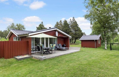 This charming holiday home, beautifully modernized in 2014, offers ample space for up to five guests with three well-appointed bedrooms, including one with a double bed and four single beds, plus a children's bed. The open-plan kitchen is fully equipped with a dishwasher, electric/gas stove, oven, microwave, refrigerator, kettle, coffee machine, and freezer, ensuring convenient meal preparation. The inviting living room features large windows that overlook the garden, while the bathroom boasts a spacious shower, underfloor heating, a washing machine, and a sauna for ultimate relaxation. The property is child-friendly, with a high chair available. Outside, a sun-soaked terrace and a spacious garden provide an ideal setting for outdoor dining and play. Enjoy high-speed Wi-Fi and unwind in this serene oasis, perfect for exploring the natural beauty of Rømø.
