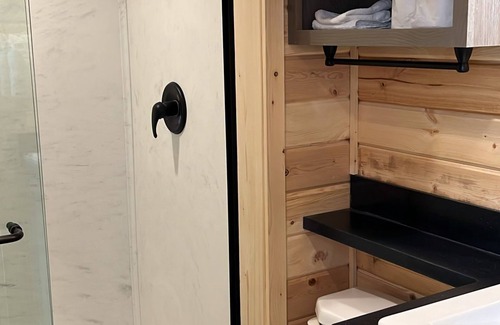 Escape to our newly built chalet, a cozy retreat nestled amidst breathtaking nature. Unwind in the king-sized bed, perfect for a restful night’s sleep after a day at Grand Canyon National Park. Perfect for viewing sunsets, sunrises, and night stargazing. A modern full bathroom ensures comfort and convenience during your stay, with shower gel, shampoo, and conditioner provided.
