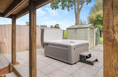 Outside, the rear patio boasts a private hot tub, the perfect sanctuary for relaxation after a day of fabulous walks in the area. There are two privacy screens that you can pull across to have total privacy in the hot tub and patio area (please note the garden beyond the shed and greenhouse belongs to the owners and is private). Immerse yourself in the soothing bubbles, unwind with a glass of wine, and let your cares melt away as you enjoy the tranquillity of the surroundings.