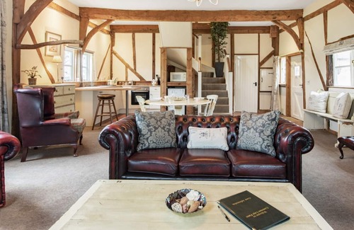 Bedroom: Kingsize (5ft) Bed Ensuite: Bath With Shower Over, Toilet. Oil central heating, electricity, bed linen, towels and Wi-Fi included. Welcome pack. Front garden with patio and garden furniture (shared with other properties on site), rear garden with patio and garden furniture. Private parking for 2 cars (50 yards from property in car park). 1 dog welcome, to be kept on a lead. No smoking. Please note: No children under 16. There is a pond 20 yards away. . Country Cottage is situated on Common Leys Farm on the borders of the Oxfordshire and Buckinghamshire countryside, offering peace and quiet or a fun filled stay. This quirky and historic property features an abundance of beams throughout the property and has a large open plan kitchen/diner/living room with very high ceilings and a lovely stable door to the rear which overlooks the large duck pond. Country Cottage faces into a shared courtyard where you can sit for hours relaxing and enjoying the sunshine listening to the fountain which is the main focal point of the courtyard. With views over Waterperry Woods and in the breath-taking countryside of Oxfordshire, Common Leys Farm is the perfect place to stay for couples wanting to get away from it all whether it be for a few nights or a weeklong stay.