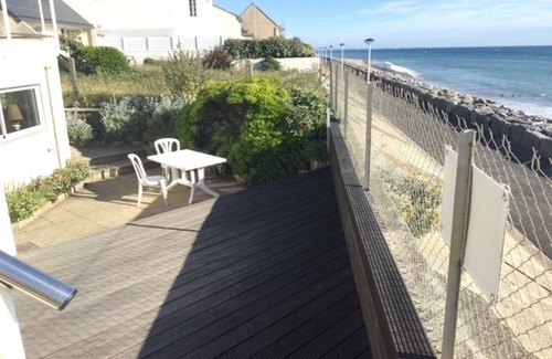 Imagine waking to the gentle sound of waves and stepping onto your private beach area, just 100 meters from your door. Welcome to Appartement Coutain face Mer, an exquisite beachfront apartment located at 90 Av. du Passous, 50230 Agon-Coutainville, France. Offering unparalleled sea views, a delightful terrace, and complimentary Wi-Fi throughout, this is your ultimate escape to the serene Normandy coast. This beautifully furnished apartment provides a perfect blend of comfort and style. It features a cozy bedroom, a fully equipped kitchen with a fridge and dishwasher for all your culinary needs, and a flat-screen TV for entertainment. A comfortable seating area invites relaxation, and the modern bathroom is equipped with a refreshing shower. Every detail has been considered to ensure a seamless and enjoyable stay, allowing you to fully embrace the tranquility of your seaside surroundings. Beyond the breathtaking views from your window, a wealth of attractions awaits. Stroll along the Plage du Centre Beach, right on your doorstep, or take a short trip to explore the historic charm of the region. Granville Train Station is 35 km away, offering convenient connections. Discover the bustling Granville Marina (37 km) or immerse yourself in art at the Richard Anacréon Museum of Modern Art (37 km). For history enthusiasts, explore the Coutances Cathedral (approx. 15 km) or the Christian Dior Museum (approx. 35 km). The picturesque Mont Saint-Michel, a UNESCO World Heritage site, also makes for an unforgettable day trip (approx. 80 km). Caen-Carpiquet Airport is 105 km away, ensuring easy access to your coastal paradise.