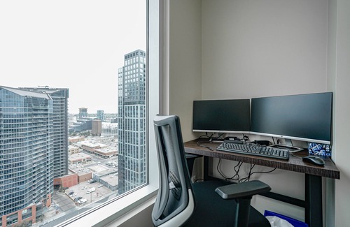 Amazing unit with an amazing view. Enjoy this entire condo. 1 bedroom and 1 bathroom with a clear view of downtown Calgary with full office desk set up including double monitors. Walking distance to the Stampede grounds, LRT station, and Calgary’s entertainment area with loads of amazing restaurants and cultural spots.