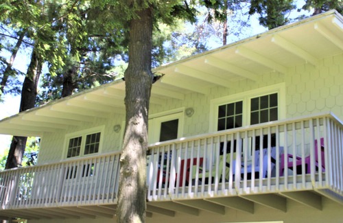 The upper one-bedroom cottage has been completely renovated and can sleep up to four (queen-sized bed in the bedroom and a sleeper sofa). The living space is accessed by stairs leading up to the raised deck (the lower level is mainly owner storage and separate from the rental area). The kitchen comes equipped with everything you need for cooking a great meal to be enjoyed out at the picnic tables. We provide a gas grill as well. The cottage has high-speed internet and a smart TV with cable. The unit is air-conditioned and equipped with electric baseboard heaters for chilly nights.