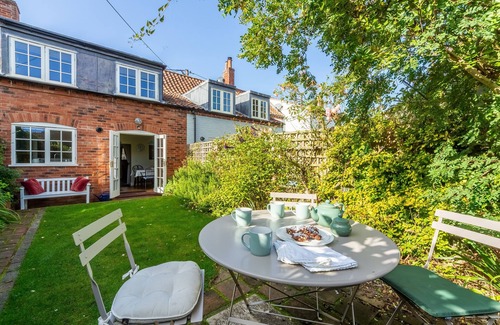 With its pretty, sunny, fully-enclosed garden with private access and and just a two minute stroll from the picturesque Buttlands in the heart of Wells, this cottage was formerly a warehouse and temporary home to the Fisher Theatre Company at the turn of the 18/19th century. The gentle incline suggests that No.1 Honeymoon Row was used as the stage area. By 1816 the building had been converted into a row of terraced cottages and that is how it remains today. This delightful cottage has been extended to include a modern kitchen/diner with doors opening into the garden, perfect for letting sunshine in. The sitting room, which forms part of the original building, is comfortable and cosy and has a large gas 'stove' to warm your toes during winter evenings. A steep traditional Norfolk winder staircase, with a twisted grab rail, leads you up to the first floor which has two double bedrooms, both with comfy beds and a family bathroom. The cottage is good for a family of four and big enough for two couples, but also ideal for someone staying on their own who wants to retreat to a quiet, private space while having all the local amenities only a short walk away.