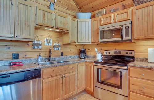 Enjoy a fun-filled nature retreat with the benefits of home at this Van Buren, MO, vacation rental. This 4-bed, 2-bath cabin in the Ozarks offers easy access to family float trips on the Current River, some of the state’s best smallmouth bass fishing, and one of the largest springs in the world. Grab a sweet treat at Jolly Cone in the evening and take in the sunset from the deck.