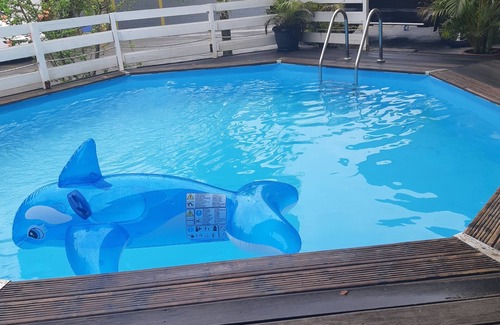 1 studio gites, air-conditioned rooms, with 1 sofa bed, bathroom with walk-in shower and washbasin, toilet with washbasin, kitchen sink, television, small refrigerator, coffee maker, toaster, microwave, located at the gosier close to all convenience, 10 minutes from airport, 5, 10 minutes to beautiful beach by car, shop 20m, private property with parking and electric gate, 2 salt pools, jacuzzi, barbecue,