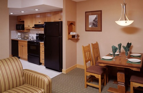 This smoke-free condominium resort features a Bistro restaurant, bar/lounge, a coffee shop/cafe, indoor swimming pool, indoor and outdoor hot tub, health and fitness center and sauna, squash courts, outdoor tennis courts, basketball court, bike rentals, onsite laundry facilities, complimentary Wifi, free parking, and free shuttle to downtown Banff.