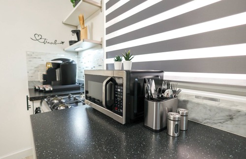 • Fully equipped kitchen (microwave, gas stove, fridge, coffee maker and basic utensils)