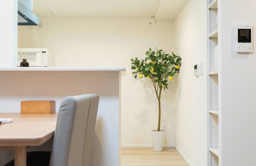 The simple yet practical kitchen is equipped with a gas stove stainless steel sink extractor fan refrigerator and more Cookware and a rice cooker are also provided making it suitable for longterm stays or simple home cooking The garbage sorting area is also clearly organized