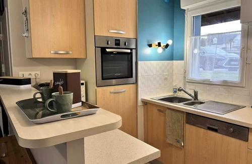 Accommodation: Don't miss the opportunity to stay in this lovely terraced house, located in a private domain with swimming pool, close to the Golf de Pléneuf-Val-André. This house has two bedrooms, one with balcony-terrace, offering an ideal setting for your relaxing moments. Enjoy direct access to the golf course, the Vallées beach and the collective indoor pool of the Residence.This house of 58m2 offers on the ground floor :- A large bright living room with lounge area (canapé, armchairs, TV) and dining area for 4 guests; - The kitchen, open to the living room, has complete equipment with: sink, 4 fire induction plates, hood, microwave, oven, fridge-freezer, dishwasher, toaster, coffee maker, citrus press and kettle; Upstairs:- A first bedroom with two single beds (90x190cm); - A second bedroom with a double bed of standard size (140x190cm) with access to a balcony-terrace; - A bathroom with bath and shower wall, toilet and washing machine; - Charges included: bed linen, linen (towels and towels).- Wi-Fi access subject to 4G network coverage.- Access to the collective pool of the Residence (open from June 28 to August 30).- Free parking in front of the house.Optional services upon reservation :End of stay cleaning: € 66.00 (subject to the conditions of the agency's rules of procedure).Independent arrival is possible after 6 p.m. and during the closing days of the agency. Key boxes are located outside the agency.
