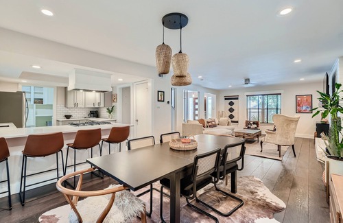 Welcome to Casa Maguey, a stunning 10BD, 2.5BA retreat inspired by the artful charm of Marfa, TX. This modern western oasis features a private pool, ping pong table, grill, and outdoor dining area—perfect for gatherings. Inside, enjoy stylish decor with a minimalist western flair that feels like a boutique hotel. Just minutes from South Congress and walkable to bars, restaurants, and coffee shops, Casa Maguey is your perfect blend of luxury, comfort, and artistic escape. Sleeps 18.