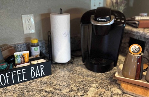 The condo is furnished with various amenities for your convenience, including a coffee station with a Kuerig coffee machine, snacks, and eco-friendly Lili Farm soaps in all bathrooms. Water is on a filtration system so perfect for drinking.