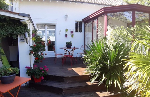 villa of 120m2 quiet near downtown and 10 minutes walk from the bay of La Baule, having 3 bedrooms, 2 bathrooms, 2 wc, large dining room living room on open kitchen, plus veranda overlooking a walled garden of 300 m² . Possibility to rent a second house at the bottom of the garden with 2 bedrooms, 1 bathroom, 2 wc, living room, kitchen. The latter can only be rented with the former. No parking problems. No opposite.