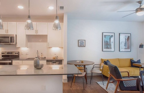Needing a place to getaway in Austin, but can't find a home with workspaces and lightning fast internet? We're here for you! We've got a a total of 2 dedicated workspaces for you, your friends, and family in brand new apartment building with luxurious amenities. Please note that we only accept instant book guests that have at least 3, 5 Star Reviews. 6 min* from Austin-Bergstrom International Airport 15 min* to Downtown Austin 5 min* from Tesla Kitchen comes complete with a glass stop stove, microwave, coffee maker, and kitchen essentials needed to create a meal for 4. The bedroom has amazingly comfortable Queen Helix Mattress. Living room has a sofa and accent chairs, with a complete desk set up. Bathrooms come serviced with Public Goods products, hair dryer, iron, ironing board, and first aid kit. Washer and dryer is included in unit. Doesn’t it seem like every time you hear about a fantastic new restaurant, bar or coffee shop, it’s on the East Side? East Austin is vital to the city’s culture, so step out and enjoy the neighborhood. RESTAURANTS The list is always growing: there’s Austin Eastciders Tap Room, Friends & Allies Tap Room, Flitch Coffee, Justine’s, Sawyer & Co, Central Machine Works, Jacoby’s, Grizzelda’s, Saten Coffee, Kinda Tropical, Saigon Le Vendeur—just to name a few. SHOPS Many of Austin’s coolest shops dwell here—like Tillery Plant Company / East Side Succulents, Whetstone Audio and Helm Boots CREATIVE CULTURE Art galleries and creative spaces occupy the nearby Canopy, which also hosts many events and studio tours. Sorry, no pets allowed. We do have guests that come that are very allergic to pet dander. If we do find that you had brought your fur baby along, we will have to charge you a fee for cleaning.