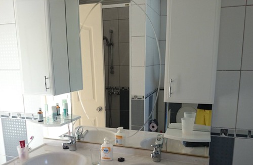 The living room has a flat screen (106 cm) with all programs Astra 1, stereo with DVD player and WLAN / WIFI. The sofa can be converted into a bed if times a snorer must sleep separately / may. Of course there is air conditioning which also heats and a fireplace.