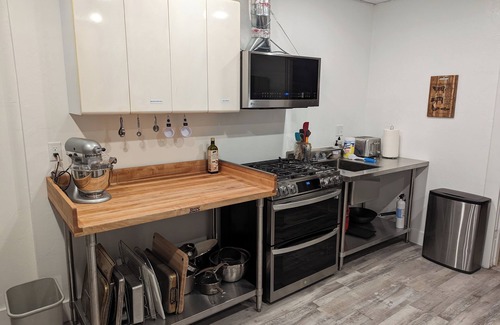 Each bedroom features a king bed, high quality linen, sound machines and chairs for private relaxation. Each bed has a high quality mattress plus a memory foam pad ensuring a superb night's sleep for all guests. Enjoy the cool amenities such as WiFi, heating, and a jetted bathtub in upstairs bathroom. Easy access to historic Uptown Butte as well as shopping along Harrison Avenue will help you feel at home while you're traveling in Butte or the surrounding area.