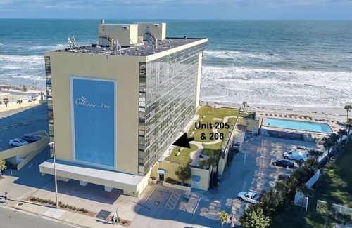 2 beach studios 2 bathrooms ๐ oceanfront pool & tiki๐น - Direct Beach ๐๏ธ Access is located in Daytona Beach. 2 beach studios 2 bathrooms ๐ oceanfront pool & tiki๐น - Direct Beach ๐๏ธ Access provides accommodation, featuring Laundry, Fireplace/Heating, Kitchen, among other amenities. This Condo features Laundry, Fireplace/Heating, Kitchen, to make your stay a comfortable one.