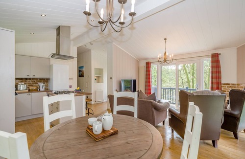Immerse your family in the perfect retreat with our stylish lodge, tailored for an idyllic family break. Revel in the luxurious open-plan living space adorned with a large Flatscreen TV, plush sofas, a modern kitchen featuring a breakfast bar, and a chic dining area, setting the stage for shared moments. The contemporary double bedroom boasts an en suite bathroom with a bath featuring an overhead shower with a rainfall head, while a well-sized and comfortable twin room offers its own en suite bathroom with a bath and overhead shower. Open the enchanting French doors leading to the decking, creating an ideal spot for that morning coffee. For those planning to bring a beloved pet, use the pet filter during the booking process to inform the resort in advance. Immerse yourself in stylish comfort, create lasting memories, and let this lodge be the backdrop to your perfect family getaway. Pets allowed in selected accommodations only.