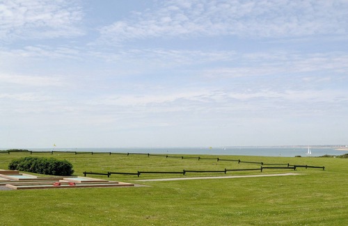 Bathroom: Bath, Toilet. Electricity, gas and bed linen included. Limited Wi-Fi signal on-site. Utility room with washing machine (coin-operated, shared with other properties on-site). Patio with garden furniture. Landscaped grounds (shared with other properties on-site). On-road parking. No smoking. Please note: Couples and family bookings only. This property is in a cliff-top location. . These three holiday bungalows (refs 30030, 30031 and UK10334) benefits from a superb, extensive panoramic view across The Solent to the mainland with the iconic Needles also visible a short distance along the cliff top walk. Their elevated cliff-top position offers a peaceful escape and offers a fabulous vantage point for watching sailing vessels and the world go by, but care muts be taken with children at all times. Pitch and putt, crazy golf, football goals and a children’s play area can also be found on-site, a few minutes from the properties. Situated on the north western coast of the Isle of Wight, the location also serves as a great base to explore all that the western side of the island has to offer and is ideal for walkers, cyclists and families alike, providing stunning sea views and dramatic coastal scenery.