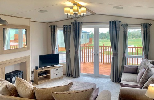 New in 2019 the Lipman Lodge is great for a romantic getaway, or there’s plenty of space for the whole family. This contemporary lodge offers open plan living, with stylish sofas, a contemporary electric stove fire and built in bluetooth speakers. The classic country kitchen includes an oven, a microwave, dishwasher, washing machine and fridge/freezer.
