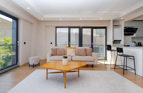 Experience Istanbul from this modern and comfortable apartment with stunning Bosphorus views. Located in a new building with elevator access, the apartment features 2 bright and stylish bedrooms, each with a full-size bed. The spacious bathroom includes a bathtub, shower, and bidet for added comfort. Whether you're exploring the city or unwinding after a long day, this serene and centrally located space is the perfect home base for your Istanbul stay.