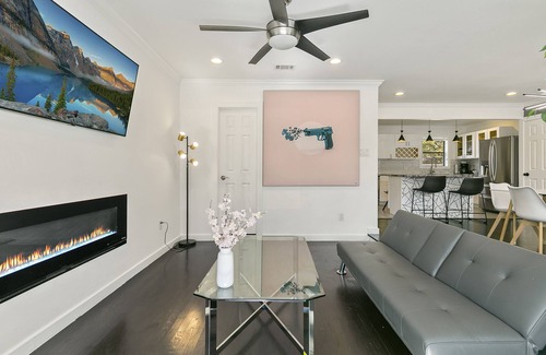Welcome to our unique getaway in Houston! This property has 2 houses, each with its own modern flair and amenities, providing ample space for a memorable stay.