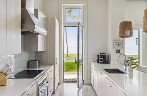 This exquisite Beach House boasting 3200 square feet of living space can accommodate up to 6 adults. The custom designed living area, dining room and kitchen all overlook the ocean and the kitchen is fully equipped for all yours, or, our chef's cooking needs. With 3 bedrooms upstairs consisting of 1 King bed with balcony and ocean view, 1 Queen bed with balcony and ocean view, 2 Twin beds-with pullout twin trundle and a large den with a queen sleep sofa for additional guests downstairs; you'll have plenty of space to relax after a day on the beach. Each bedroom has it's own en-suite full bathroom and a there is a 4th full bathroom in the den. Each bedroom has a 55" flat screen television. Secure internet and long-distance phone service are included and Netflix, Hulu, Apple Tv and other apps all available with your log in and password.