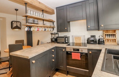 Amenities: Gas central heating with woodburning stove. Electric oven and hob, microwave, fridge, washing machine, dishwasher. Smart TV, WiFi. Fuel, power and starter pack for woodburning stove inc. in rent. Bed linen and towels inc. in rent. Parking is available in the market square adjacent to the property. Rear courtyard with decking, furniture and barbecue. Sorry, no pets and no smoking. Shop 0.2 miles, pub 0.1 miles. Note: There is one step up into this property, please take care