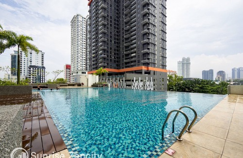 The apartment is homey, well lit, and cooling. It has a well equipped dry & wet kitchen, perfect for families to cook. You can also enjoy the big Infinity Pool with a BBQ area, or work out in the well equipped Gym room.