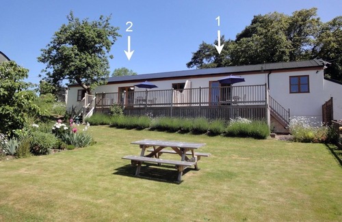 2 Shippen Cottages is a peaceful single-storey semi-detached cottage in countryside a mile from the Devon village of Wilmington. The cottage sleeps four people in two bedrooms, a double and a twin, both with en suite shower room and pretty views. On the same level is an open plan living space with seating area, dining area, kitchen and French windows to a deck with outdoor furniture. There is also access to ten acres of woods and meadows with picnic tables to walk. A mile from the village, 2 Shippen Cottages is a tranquil base for a relaxing break in Devon.
