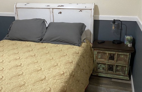 Tucked into the brush this cute little house has everything your gonna need to relax and enjoy your stay. Conveniently located about 1/2 way between Wheeler Tx and Shamrock Tx. This little house has a huge porch to listen to the birds from. Surrounded by wildlife in this area you never know what you might see! The kitchenette has a toaster, hot pad and some pans, keurig coffee maker, mini-fridge, variety of utensils, plates and cups! You will also find linens on beds and in the bathroom for your convenience!
