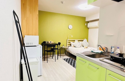 Welcome to home Tsurumibashi There is one double bedAside from the TV a dining table set and a kitchen are also installed Up to 2 people can stay recommended for couplesThe entrance door is equipped with an electronic lock and safety is perfect