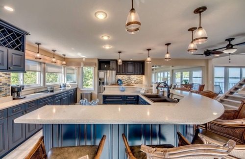 An ideal resort-style home that is perfect for family reunions, weddings or other special gatherings. Widgeon Point is a compound bordered entirely by stunning waterfront views. There are several observation decks, a pier that connects to a covered bayfront dock to latch your boat to, and another pier that transports you to the nearby lush green mangroves.