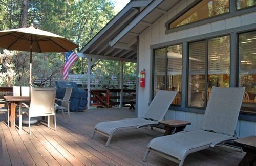Big Cedar has spectacular views of the Yosemite forest and mountains from large picture windows. The home has central heating and air, WiFi, a washer and dryer, a dishwasher, a fireplace (wood provided in season), and flat-screen satellite TV in both the living room and the Master bedroom. This home is very private with a large, enclosed deck, complete with a gas BBQ for grilling your favorite meal while enjoying the incredible Yosemite views! No Pets allowed. "EV Charging Station available within five miles of the cabin"