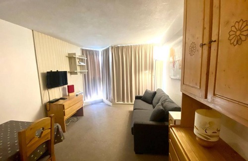 25m² studio with south/east balcony, sleeps 4, equipped kitchen, TV is located in Val Claret. 25m² studio with south/east balcony, sleeps 4, equipped kitchen, TV provides accommodation, featuring Fireplace/Heating, Child Friendly, Kitchen, among other amenities. This Apartment features Fireplace/Heating, Child Friendly, Kitchen, to make your stay a comfortable one.