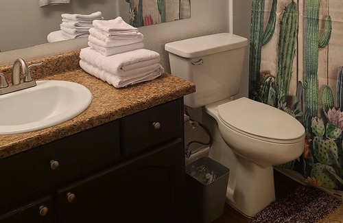 We pride ourselves in providing you with little touches that make your life easier: two rolls of toilet paper, shampoo, conditioner, sugar, salt, oil, pepper, coffee & creamer, 3 trash bags, 3 laundry and dish detergent pods, as well as access to a laundry room on-site.