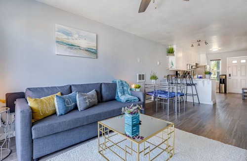 Feel the breeze coming off the ocean from one of the two outdoor balconies. The main balcony off the living room has a ocean view looking out at the famous OB Pier. The second is a wrap around balcony curated to help you un-wind the it's the perfect spot to practice your downward dog, while inhaling that rejuvenating sea air. The condo has two large bedrooms , one with a private workspace , high speed internet, printer, mouse, key board and monitor. The pool is a salt water heated pool.