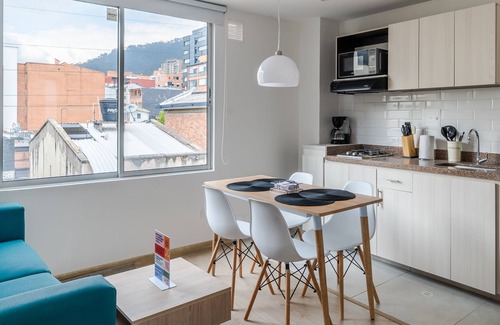 "Anima 64 is an excellent accommodation choice in Bogotá for those seeking a modern and minimalist space for their stay. It is located in Chapinero Alto, close to the city's most popular tourist destinations. The building features 24 apartments, each equipped with everything you need for a comfortable and enjoyable stay. The apartment includes a semi-loft bedroom with a maximum capacity of 2 people."