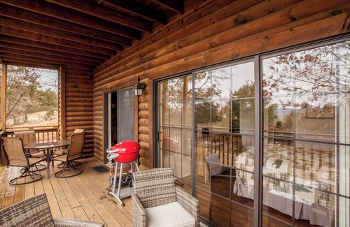 Private Covered Deck: Electric Grill, Table, 6 Chairs, Loveseat, Ceiling Fan