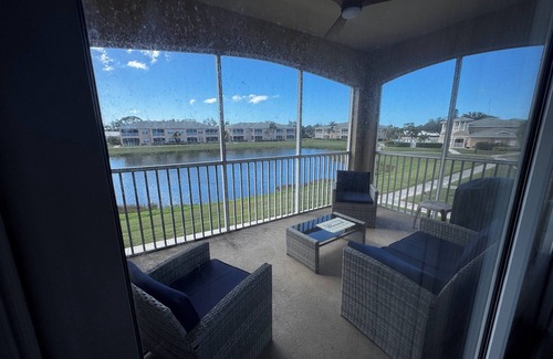 Beautiful view of lake from Screened-In Lanai, Living Room and Primary Bedroom. 2 Guest Rooms, both accessing a second balcony.