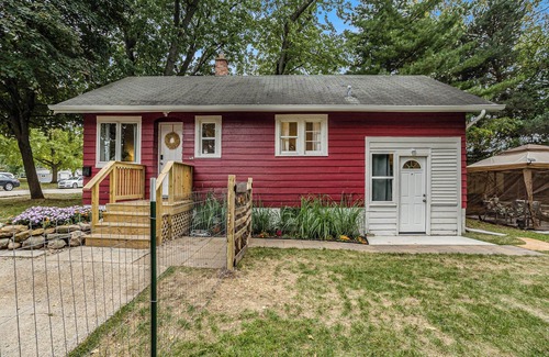 Welcome to this hidden gem of a cottage, conveniently located walking distance from downtown Grandville and just minutes from Grand Rapids. Outside is a quiet street in a peaceful, friendly neighborhood yet only a quick Uber or car ride from everything! This 3 Bedroom, 1 Bathroom house can sleep up to 9 guests and will provide your family with all the comforts of home. 2 TVs (one in the living room and one in the basement bedroom), plus a bonus game area, offer relaxing and fun times together. There is also a Keurig coffee bar along with a fully stocked kitchen for all your cooking needs. Backyard is fully fenced with patio seating as well as a small, inflatable hot tub for the chilly evenings! Propane grill available upon request. Train does run past at various times of the day but not at night. Box fans, USB ports for charging, and towels are provided. Driveway and street parking provides plenty of space for guests.