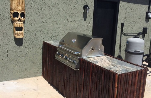 Home is recently remodeled with new floors, new appliances and new furniture, laminate floors throughout, very clean. the master and one guest bedroom have new king size beds and the third has a queen size bed. new front load washer and dryer are available in the garage as well. pool and built in gas grill and patio furniture in the covered patio area. lots of parking for cars, boats or RV's if needed, house is air conditioned