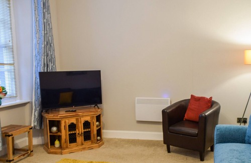 Bathroom: With shower over bath, and toilet.. Electric central heating, electricity, bed linen, towels and Wi-Fi included. Welcome pack. . Rear garden with courtyard and garden furniture (shared with other properties on-site). On road parking. No smoking. . Recently refurbished in 2021 to a very good standard, this beautiful top floor apartment is conveniently located in the heart of Campbeltown centre. It’s a duplex apartment with access on the second floor, with stairs to the bedrooms located on the third floor and is extremely spacious with plenty of space for people sharing. There are three welcoming bedrooms offering cosy beds, two double bedrooms and a single bedroom, all served by a family bathroom with bath/shower over. The fully equipped kitchen has everything needed to self-cater in style and the living room has a large, flatscreen Smart TV, providing plenty of space to allow you to unwind.