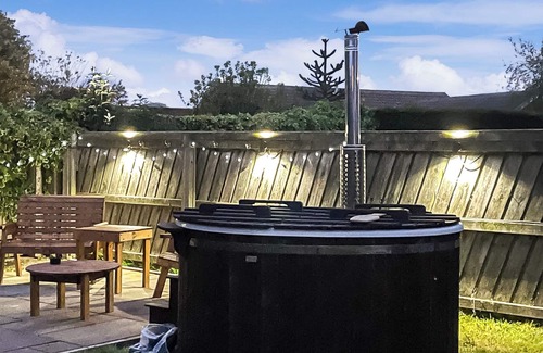 Bathroom: Bath With Shower Over, Heated Towel Rail, Toilet. Gas central heating, electricity, bed linen, towels and Wi-Fi included. Initial fuel for wood burner included; remainder available locally. Travel cot, highchair and stairgate. Welcome pack. Enclosed lawned garden with patio area, barbecue and garden furniture. Hot tub for 4 (private). Bike store. Private parking for 4 cars. No smoking. Please note: There are 2 steps in the garden.. Welcome to Delgany House, a luxurious three bedroom dog friendly retreat nestled in the charming seaside town of Filey, North Yorkshire. This stunning property is perfect for six and is ideally situated, just a 15-minute stroll from the pristine sandy beaches that make Filey a beloved destination.