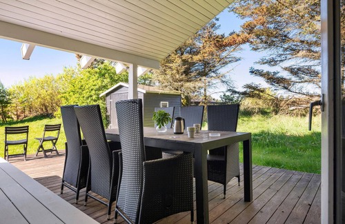 This energy-friendly vacation home is situated on a beautiful natural plot and within walking distance of the fishing village of Lønstrup and its tranquil alleys, stores, artisans and cafes. A house with Wi-Fi (20/10 MB), a bright living room and a cozy fireplace. The authentic cottage atmosphere is preserved in the house. This house is also not far from Rudbjerg Knude lighthouse and one of the best beaches in the Jammer Bay. In addition to a bright living room with a ceiling open to the ridge, you can also expect a bright bathing area with an 18 m² swimming pool. You can see the room through the glass wall from the living room. From the pool department and the living room you can reach the partially covered terrace to the west, where comfortable garden furniture awaits you. The uncovered terraces to the south and east are also equipped with quality garden furniture. The house is well insulated and is heated with heat pumps, so the consumption costs are somewhat lower.