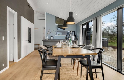 In an undisturbed location, at the end of a road, this beautifully designed and extremely inviting vacation home welcomes you. Enter the house with your family and enjoy the stylish and lovingly furnished accommodation. Here, emphasis has been placed not only on comfort and coziness, but also energy-friendly living. Make the open living space your family meeting place, where you can watch movies together, play at the dining table or swing the wooden spoons in the kitchen. In the morning you can enjoy your steaming tea on your terrace and look out over the water.