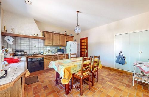 Enjoy your vacation in Royan and by the sea in this pleasant vacation home. The classic interior with solid and partly antique wooden furniture invites you to relax in front of the wood-burning stove or prepare delicious meals together in the kitchen, perhaps even fish dishes. Eat in the kitchen or in the conservatory while planning your next activities.