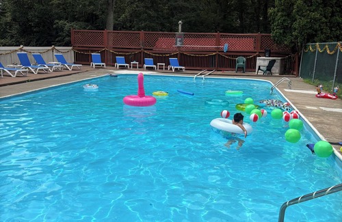 Yes, this White Mills house has a swimming pool. Check the Facility Overview section for details about the pool and other available facilities.