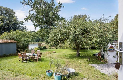 Enjoy the spacious, west-facing garden, which borders a former sports field that is now used as an idyllic communal area. Take the opportunity to relax on the green lawn or take a walk through the nearby Lammehave Alley, which is surrounded by the estate's fields. Relax in the cosy ambience of the house, which has retained its authenticity while offering modern comforts.