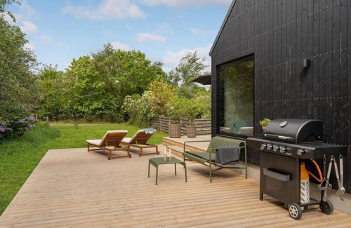 Welcome to this Scandinavian, stylish lightly furnished vacation home. Here you will find everything to spend a carefree vacation. The spacious living room is bathed in natural light through the large windows and will be your family's meeting place. Spend fun hours cooking, playing and relaxing. Enjoy balmy summer evenings or sunny mornings on the large wooden terrace with a good drink, depending on the time of day, and plan your activities and excursions for the days ahead.